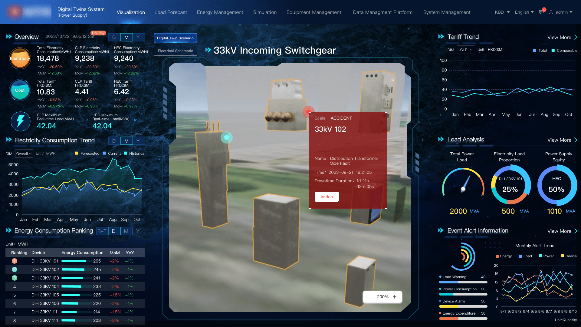 全场站数字孪生与电气设备数字孪生、实现电气仿真,根据电气元件仿真参数,评估运网是否存在负荷瓶颈